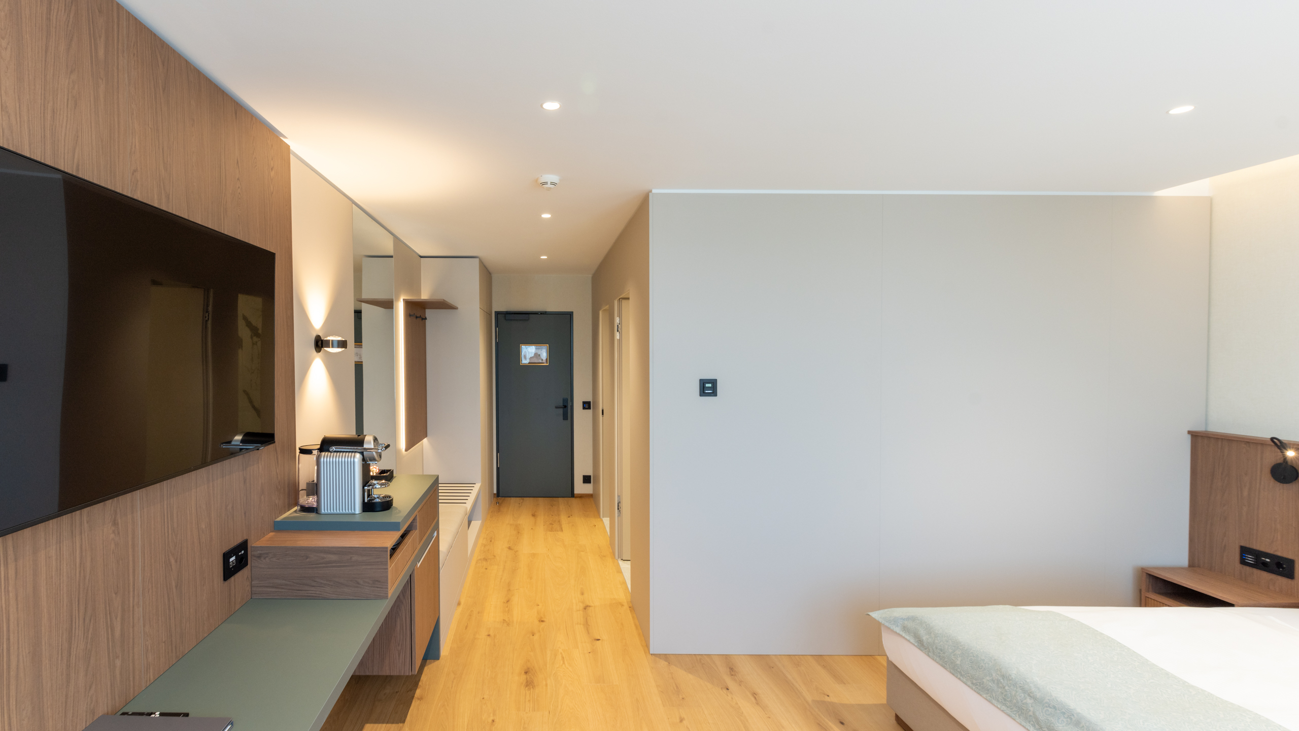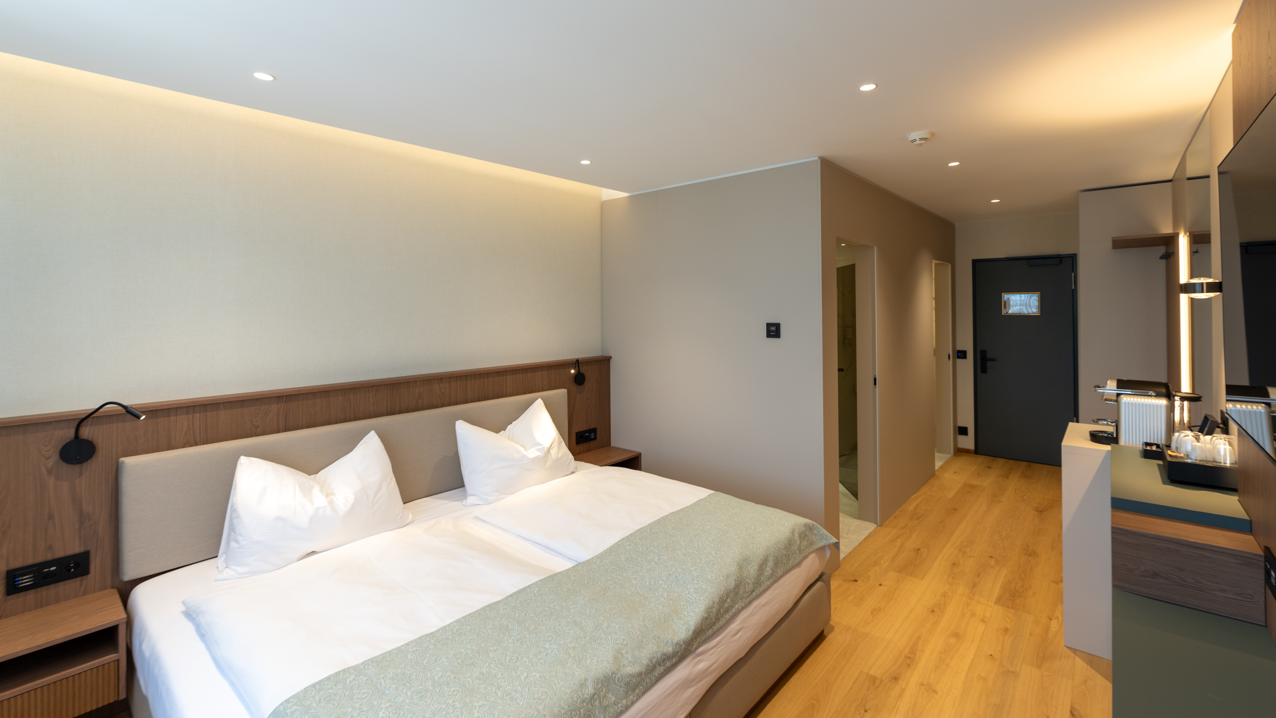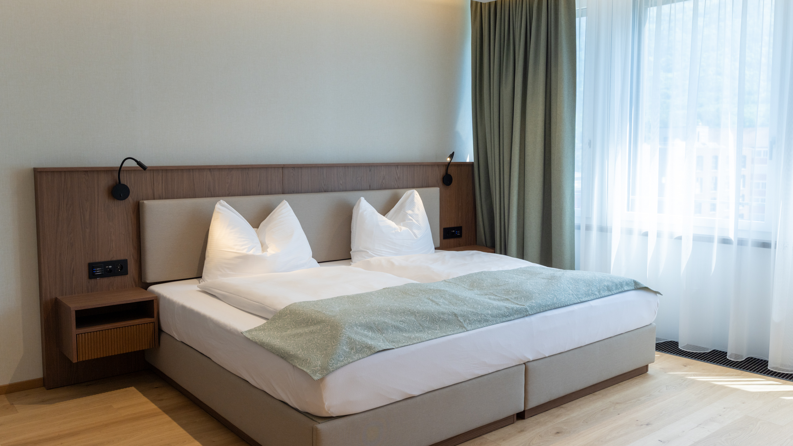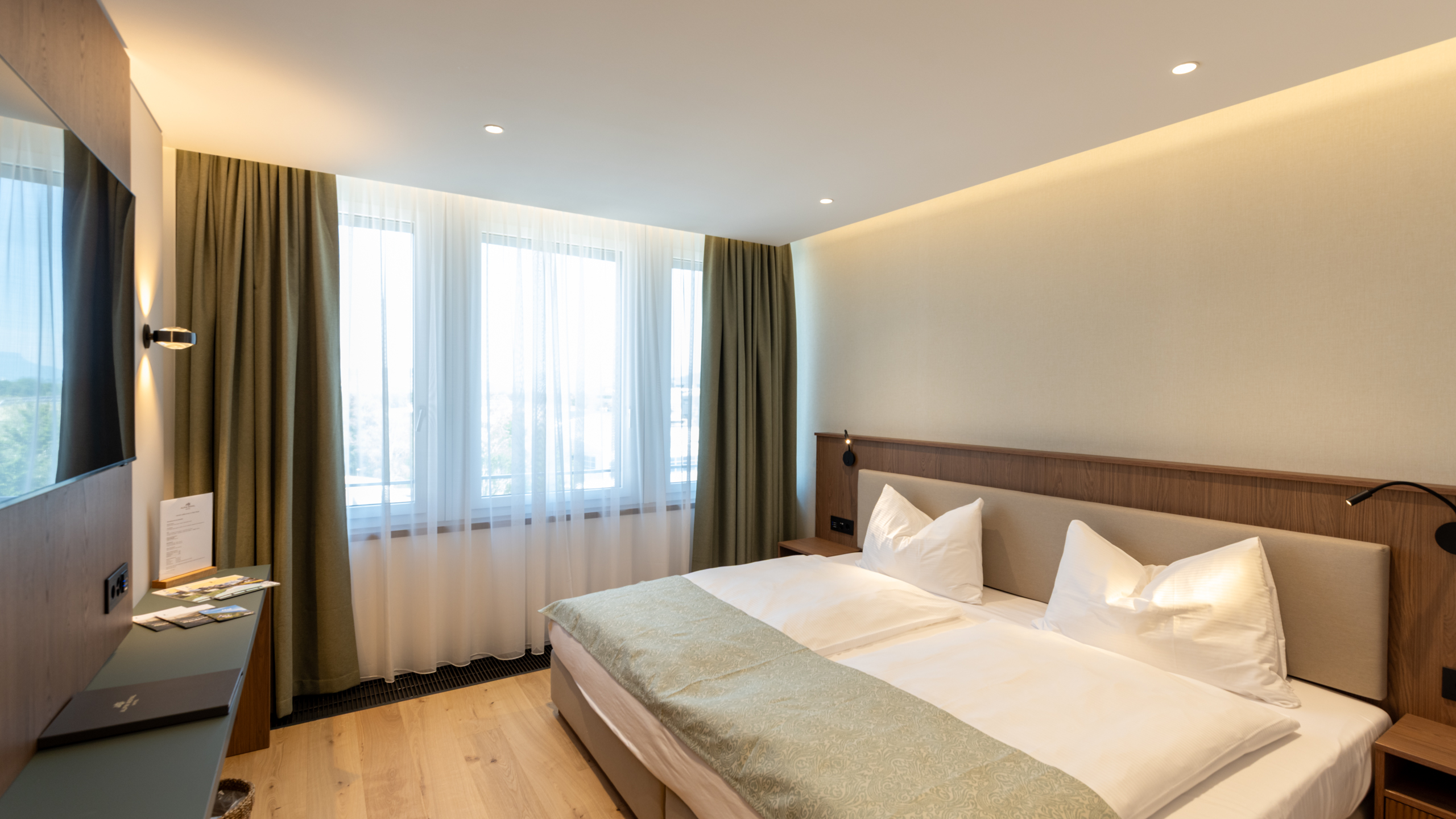 Die 26 m² grossen Doppelzimmer im Alpin Royal Hotel in Liechtenstein bieten ein Kingsize-XXL-Bett, hochwertige Ausstattung und eine traumhafte Aussicht auf die Berge. Geniessen Sie eine Auszeit mit kostenlosem WLAN, Flachbildfernseher, Nespresso-Kaffeemaschine und erfrischendem Mineralwasser. Beginnen Sie den Tag mit einem ausgiebigen Frühstück im Hotelrestaurant und lassen Sie ihn bei exquisitem Dinner oder einem Besuch im hoteleigenen Casino stilvoll ausklingen. Das Frühstück ist im Zimmerpreis inkludiert.